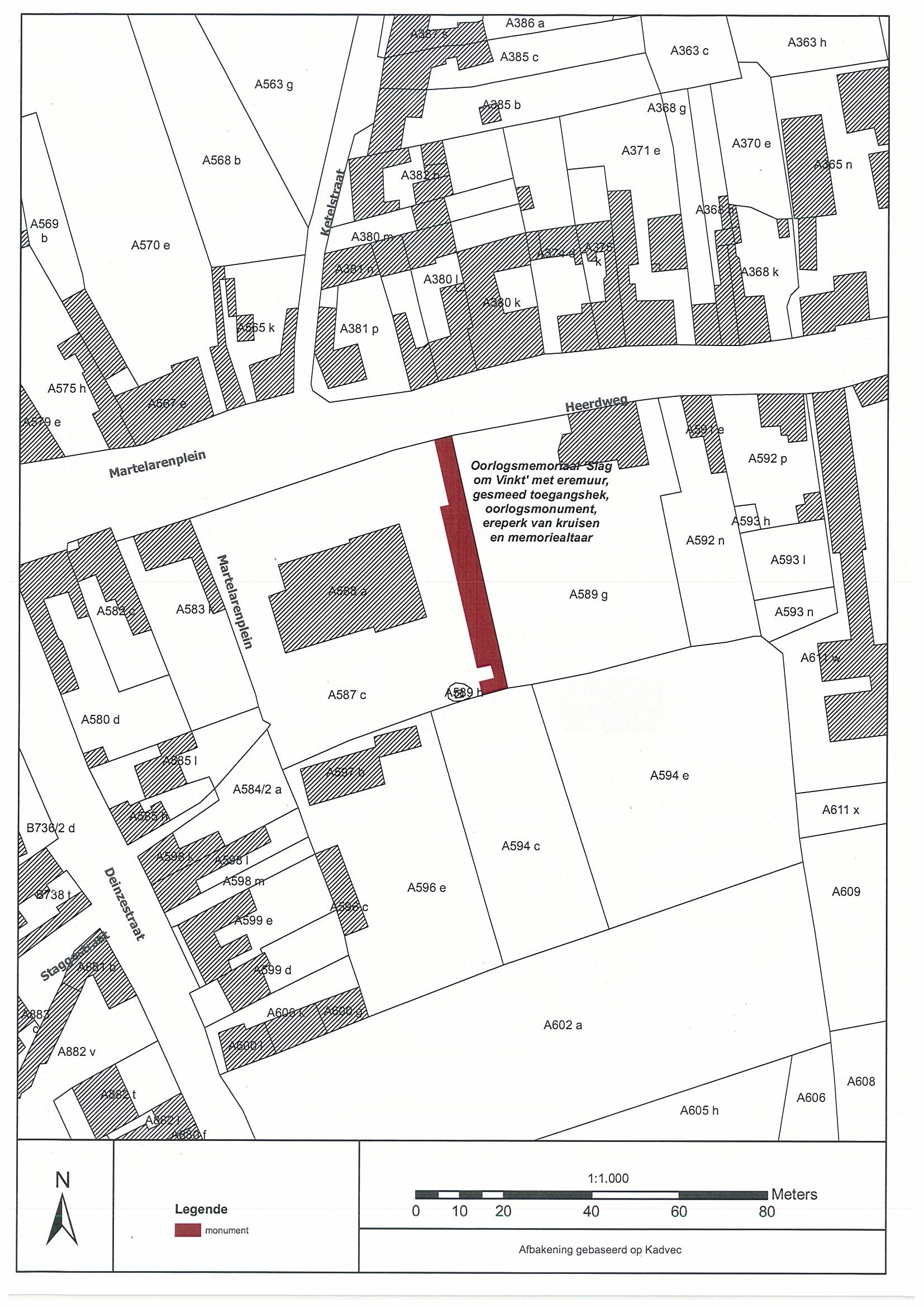 | Opmerkingen | met eremuur met monument, gesmeed toegangshek, ereperk van kruisen en memoriealtaar op het gemeentelijk kerkhof te Deinze (Vinkt) |