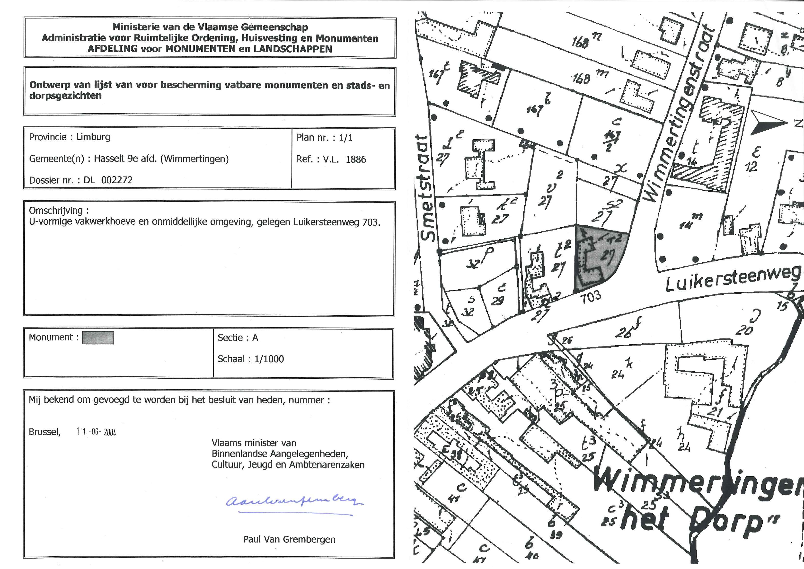| Opmerkingen | aan de Luikersteenweg te Hasselt (Wimmertingen) |
