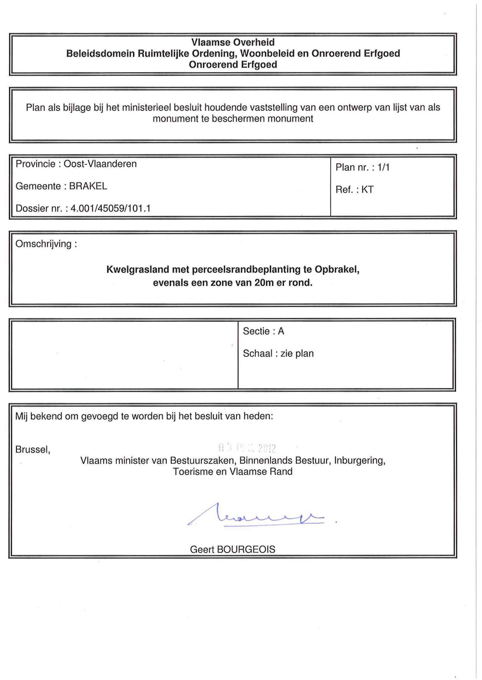 | Opmerkingen | met een zone van 20 meter er rond te Brakel (Opbrakel) |