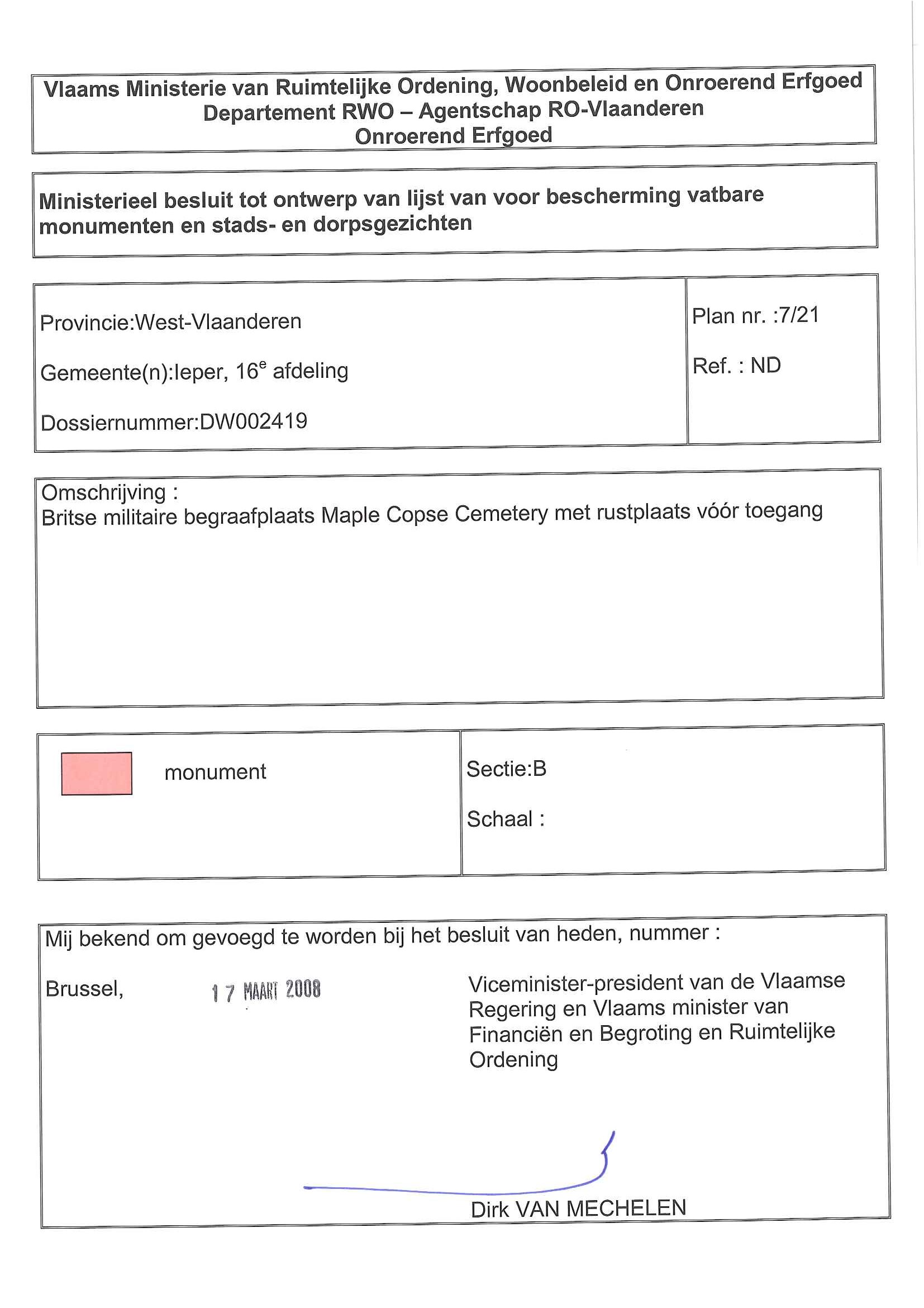 | Ondertekend door | Van Mechelen, Dirk |