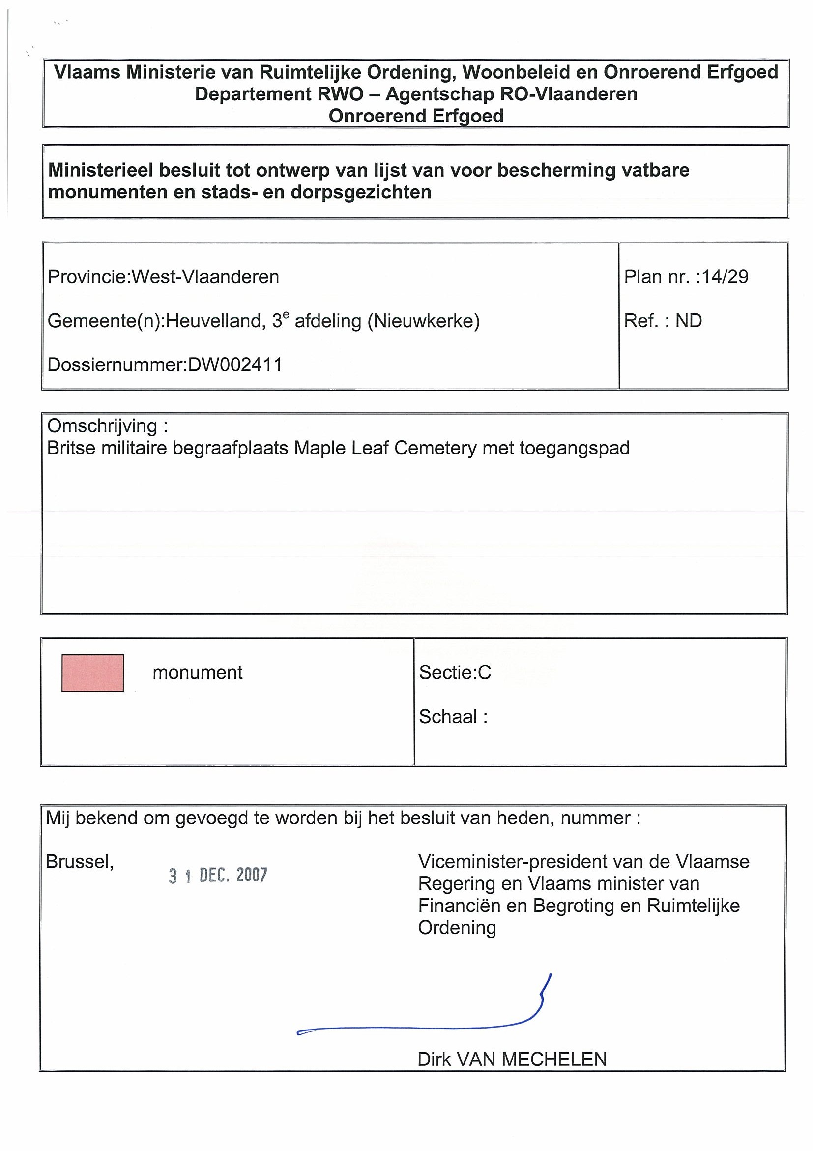 | Ondertekend door | Van Mechelen, Dirk |