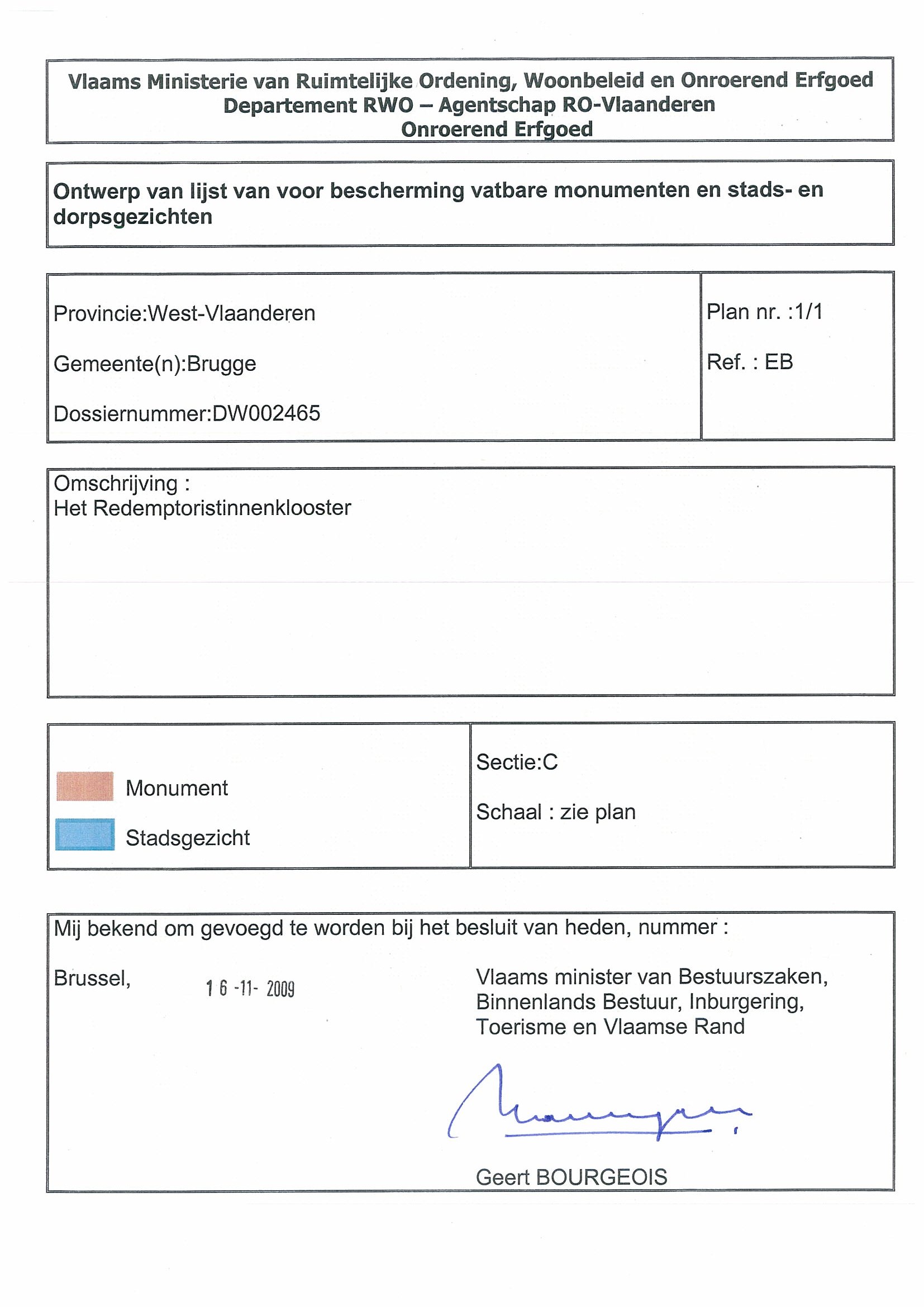 | Opmerkingen | V118; definitief beschermd als stadsgezicht; te Brugge (Brugge) |