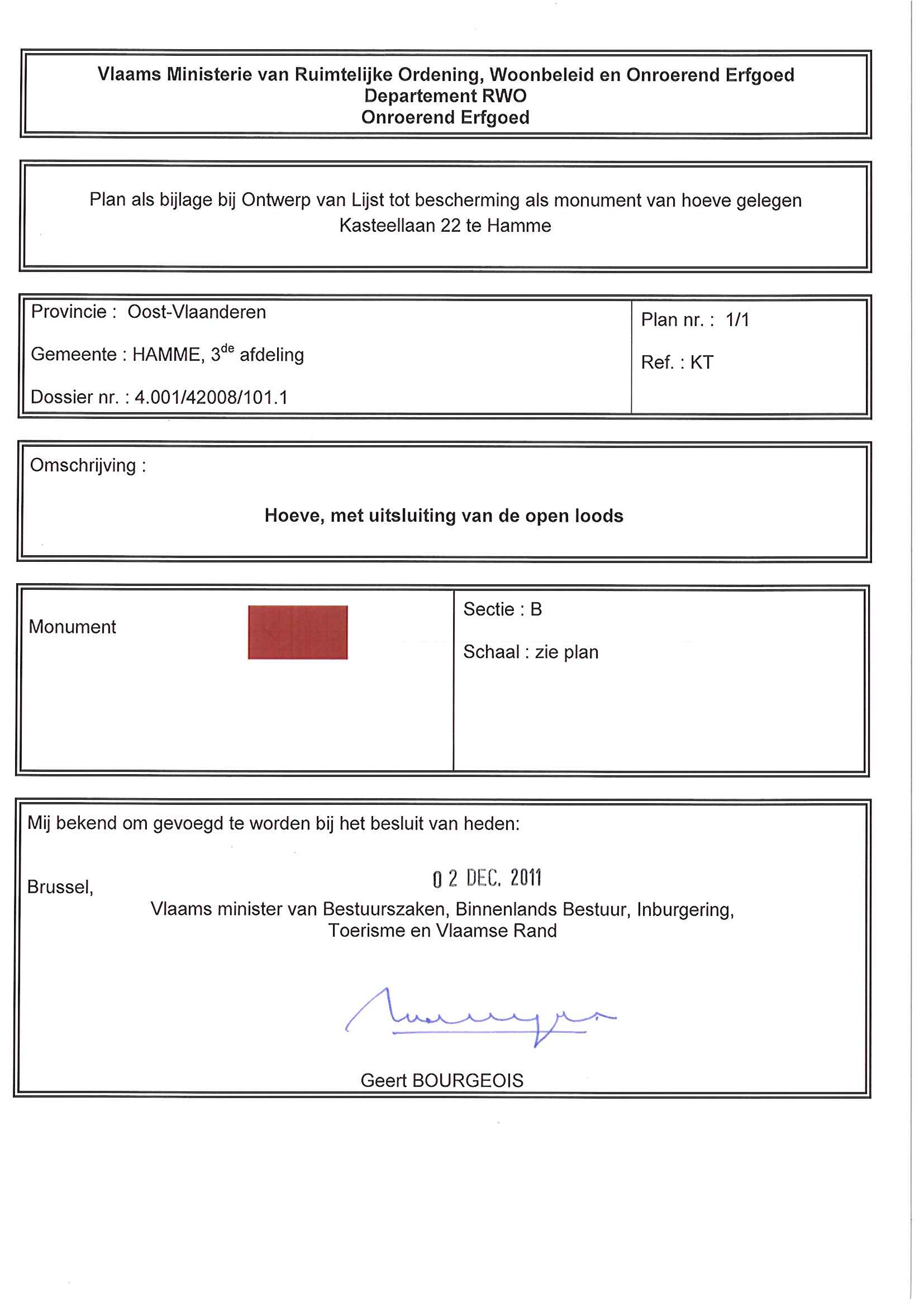 | Opmerkingen | zonder de uitgesloten percelen, zie kaart; Kasteellaan te Hamme (Moerzeke) |