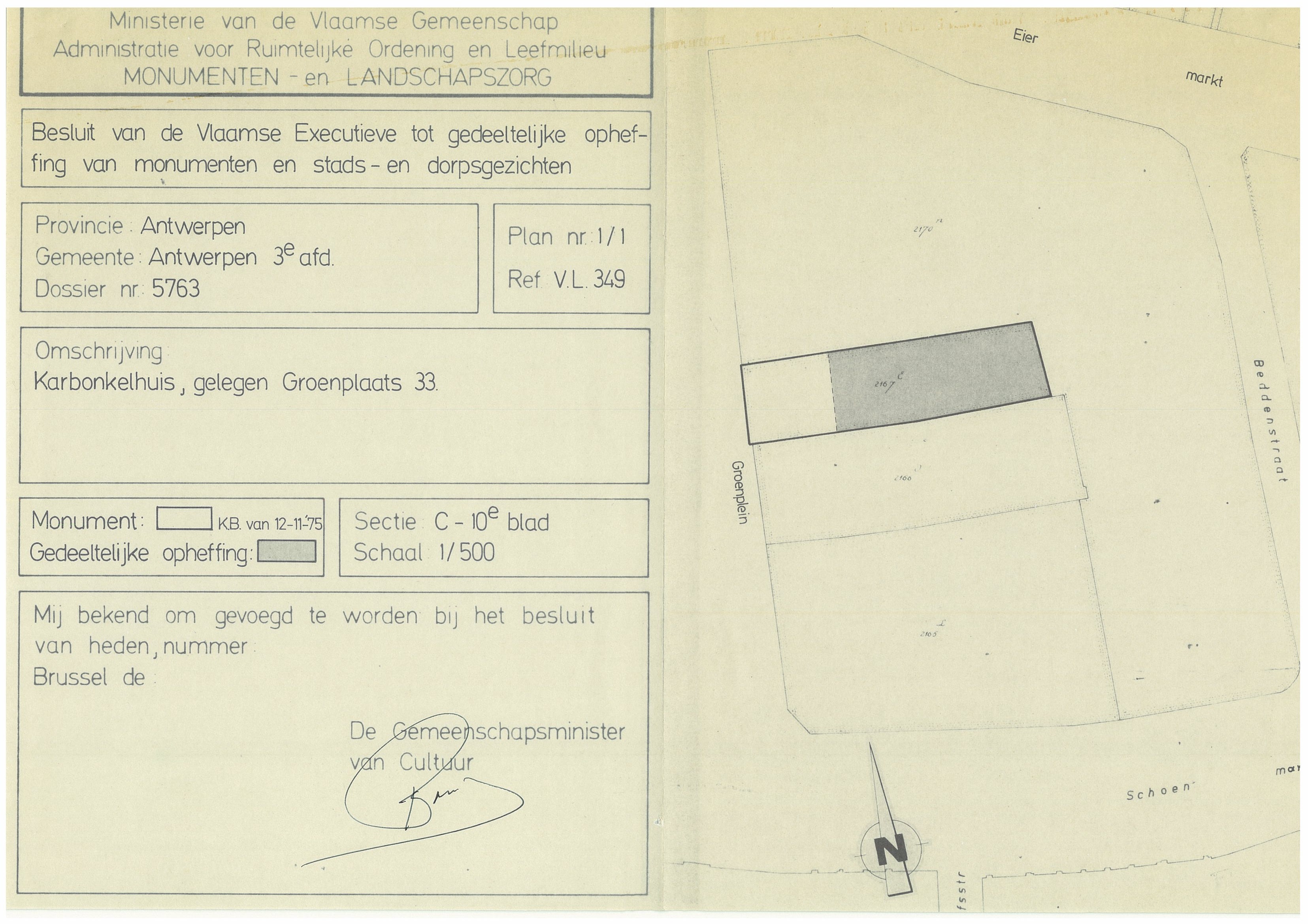 | Opmerkingen | gedeeltelijke opheffing; aan de Groenplaats te Antwerpen (Antwerpen) |