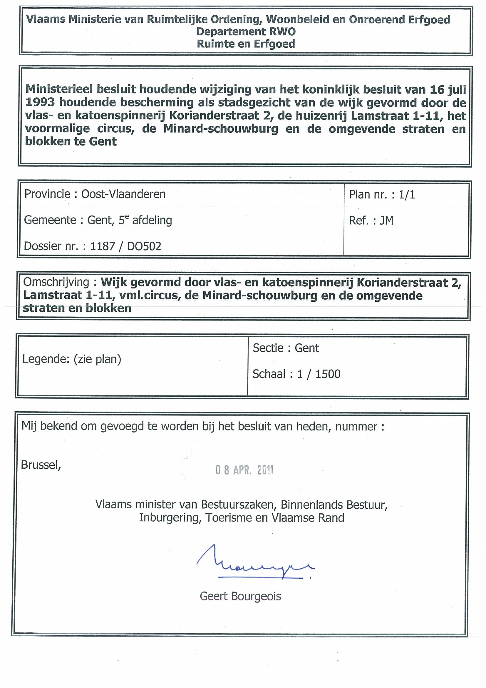 | Opmerkingen | Waalse Krook wordt geschrapt uit de bescherming als stadsgezicht; te Gent (Gent) |