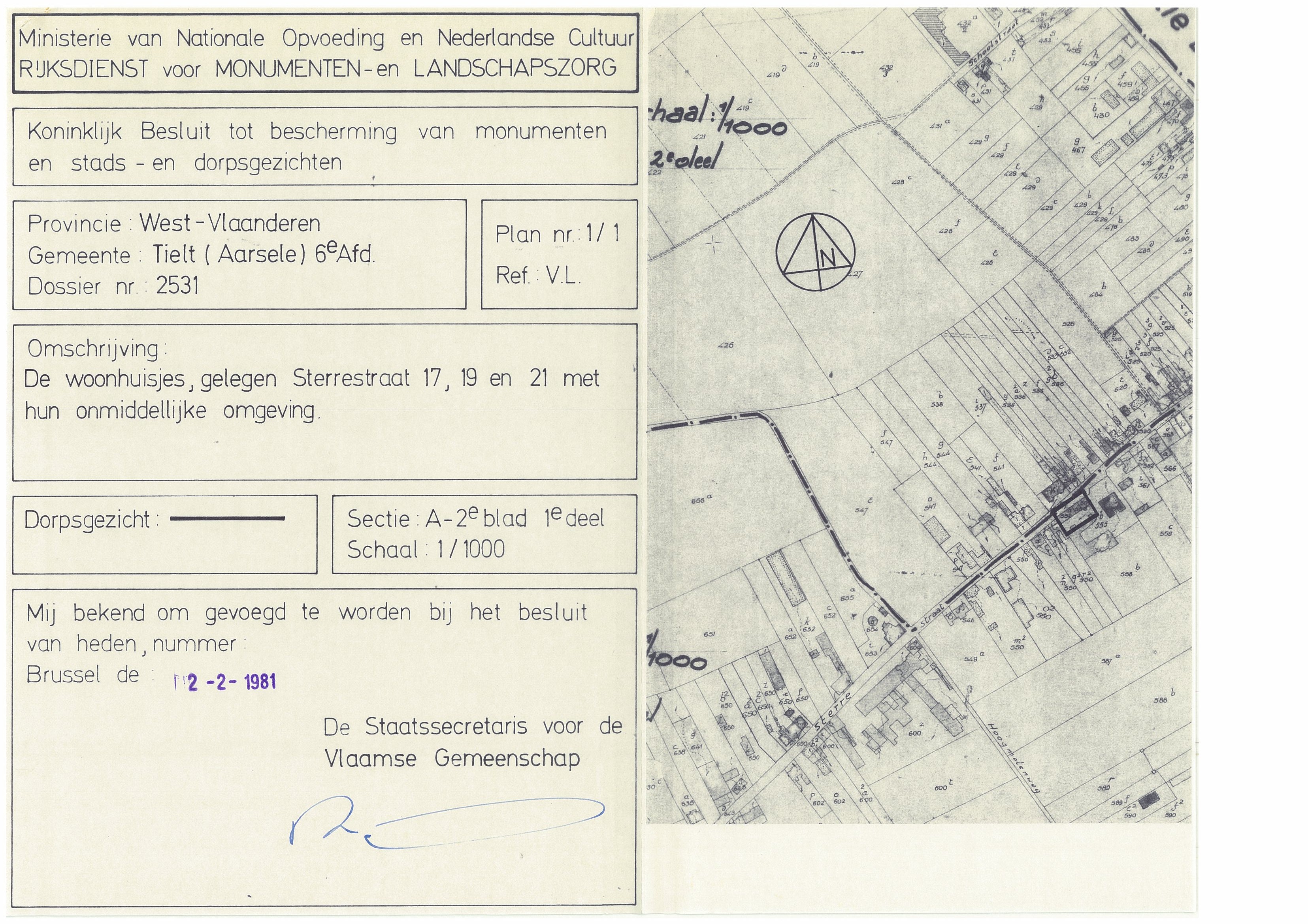 | Opmerkingen | in de Sterrestraat te Tielt (Aarsele) |