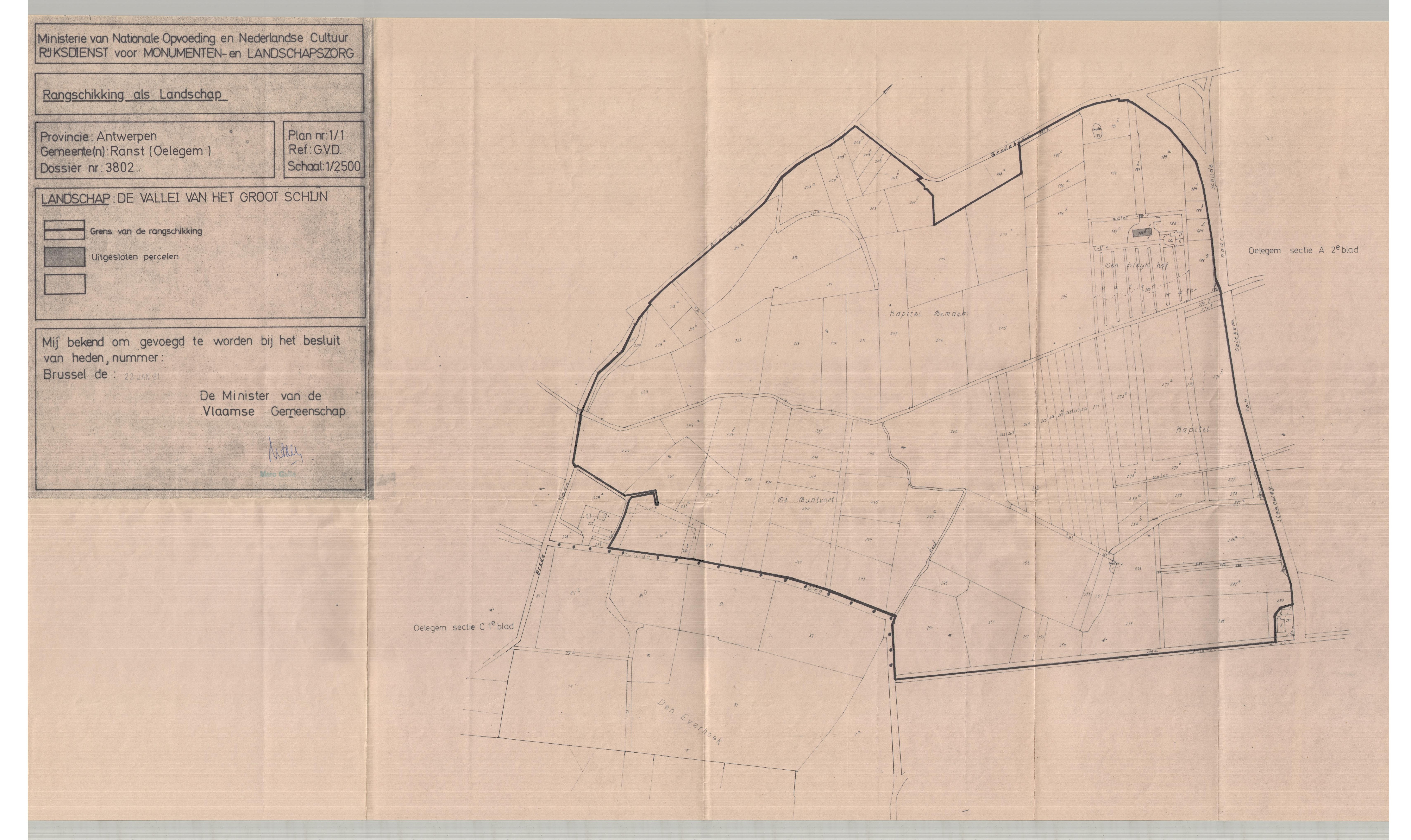 | Opmerkingen | ingetrokken; te Ranst (Oelegem); niet gelegen naast of aansluitend bij andere bescherming van de Vallei van het Groot Schijn te Wijnegem/Wommelgem |