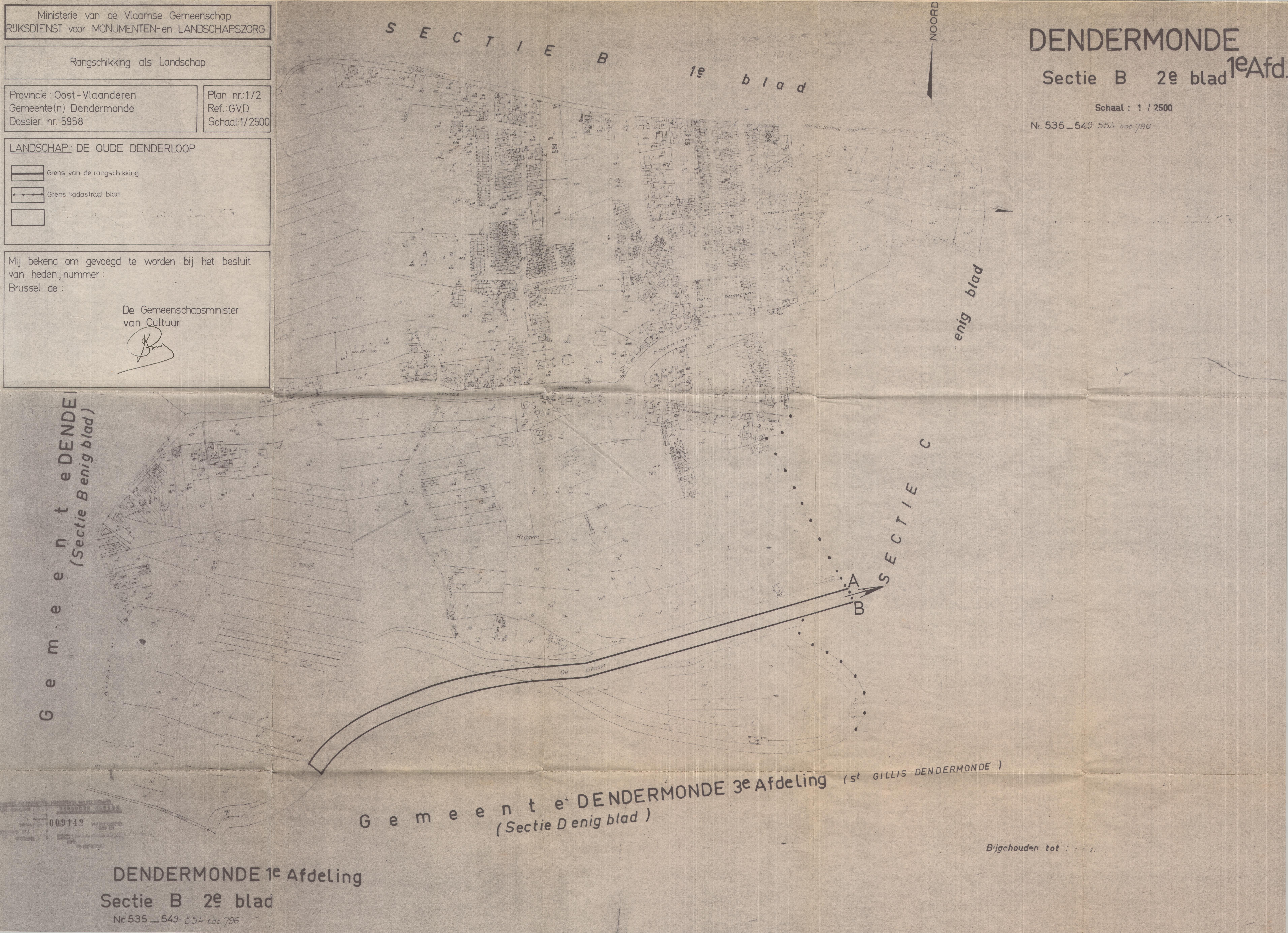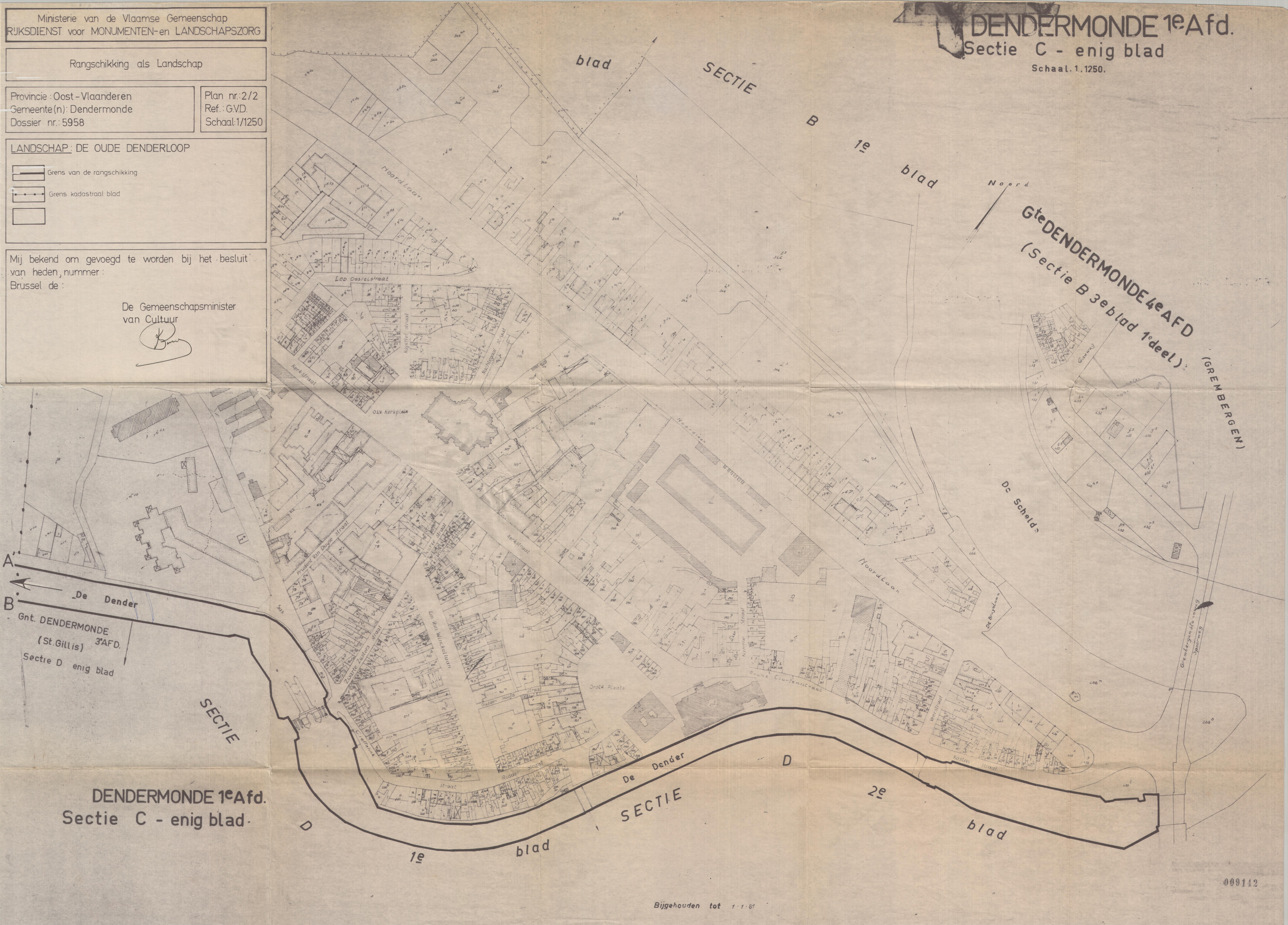 | Opmerkingen | plannen zijn niet gedateerd; te Dendermonde (Dendermonde); bescherming gedeeltelijk opgeheven |