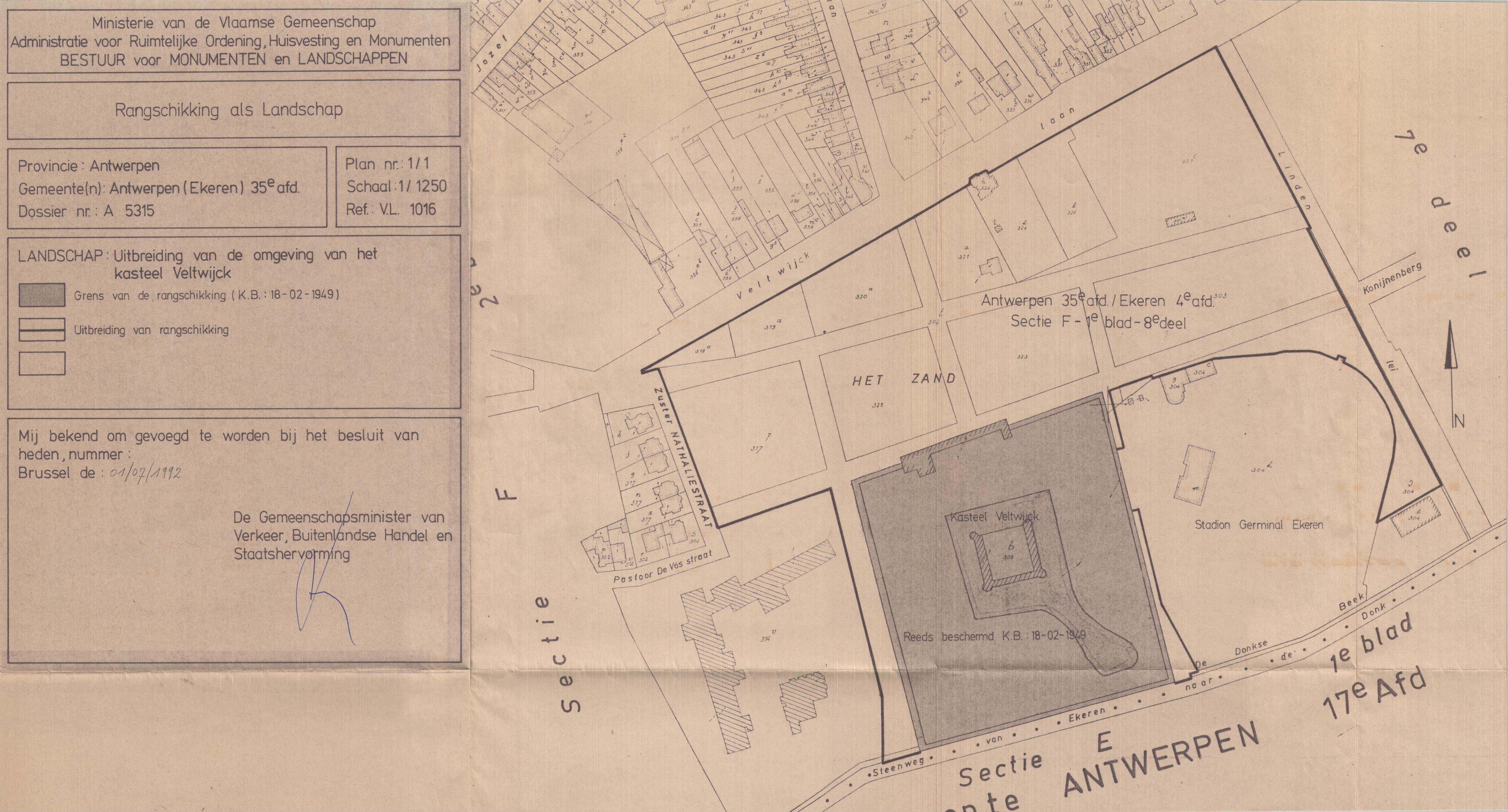 | Opmerkingen | Uitbreiding van bescherming; te Antwerpen (Ekeren) |