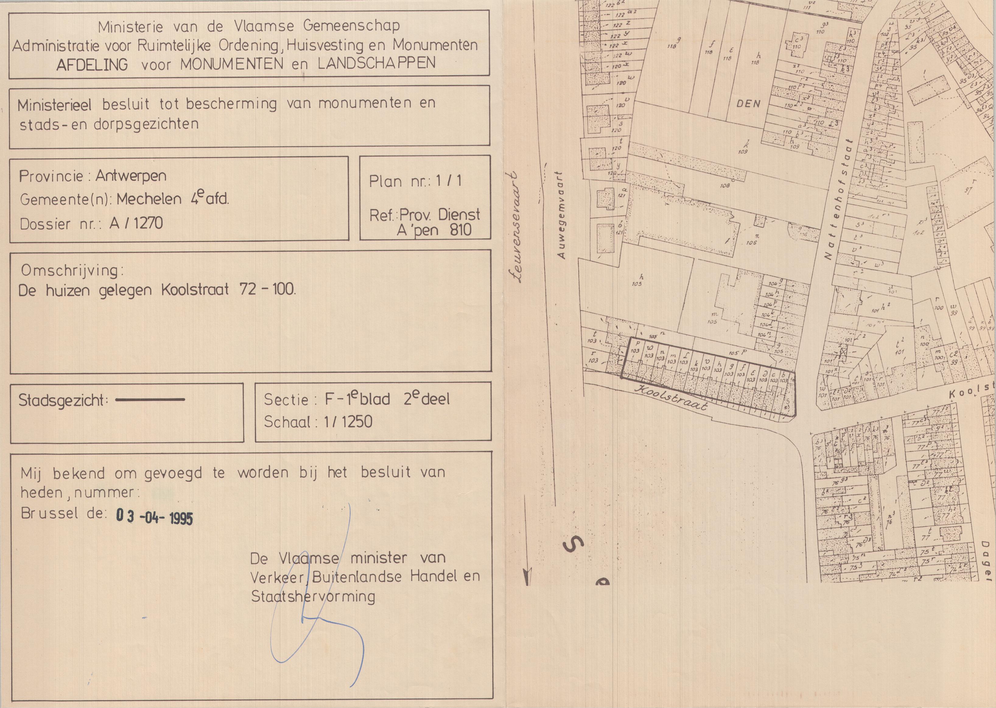 | Opmerkingen | enkel plan van stadsgezicht bij besluit |